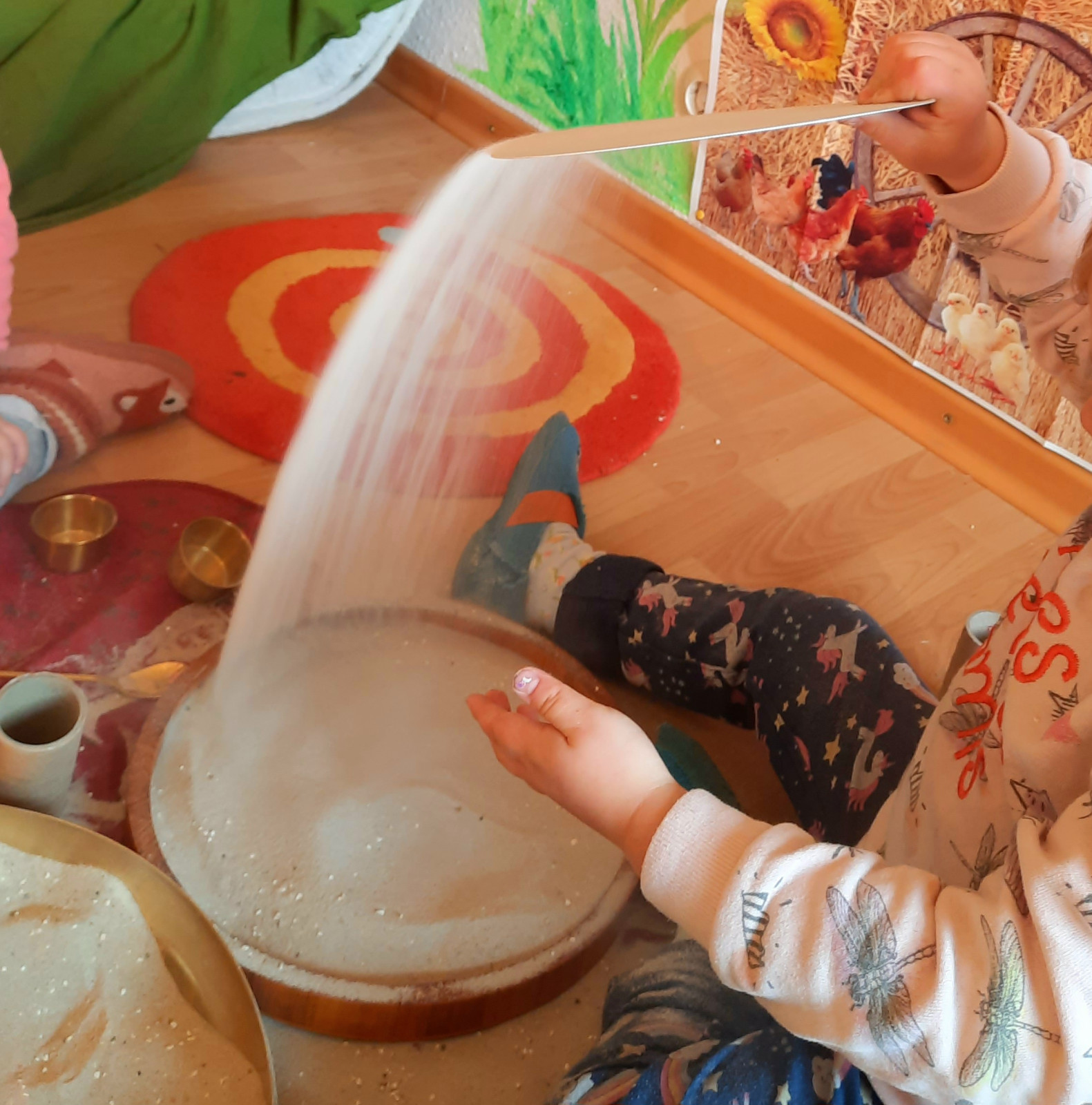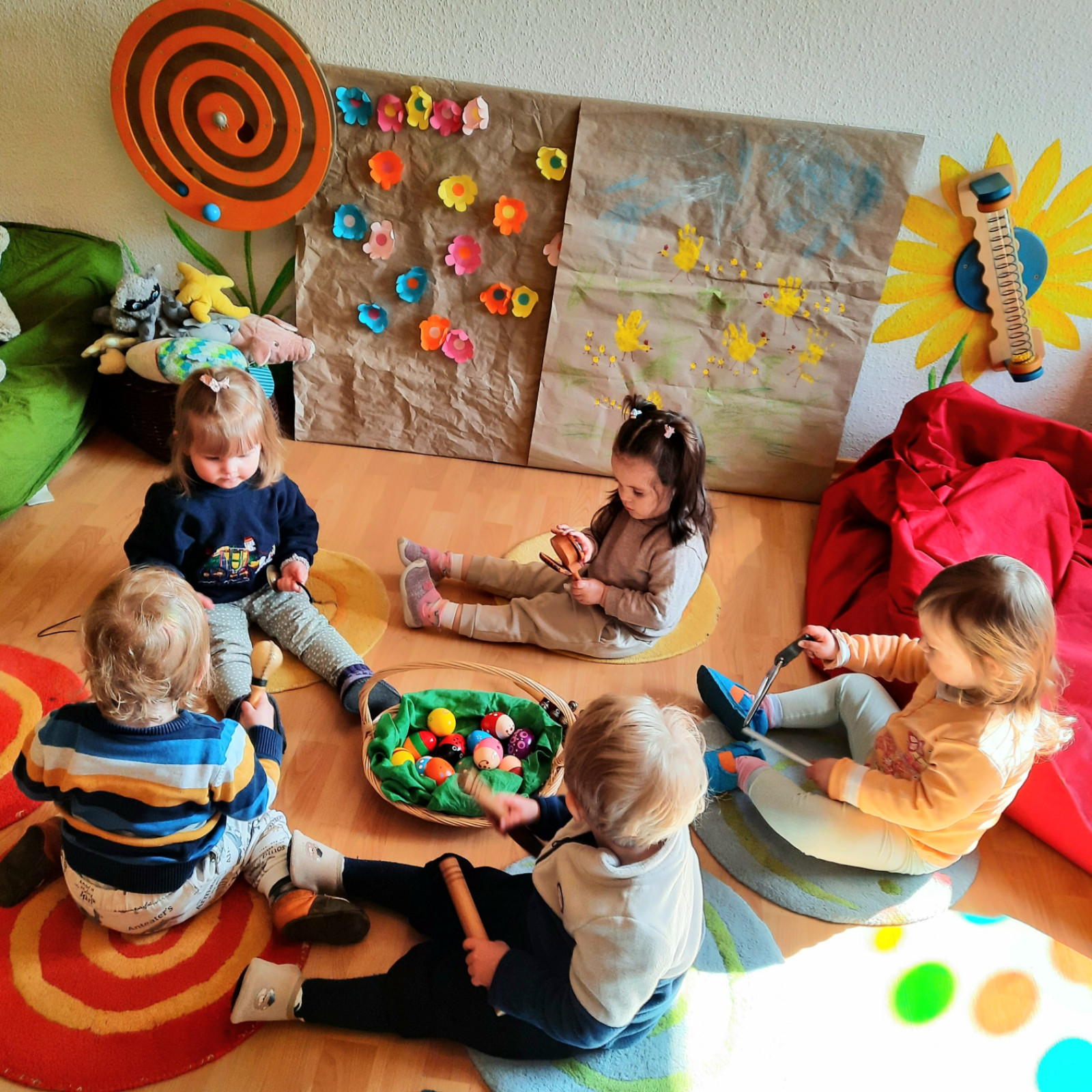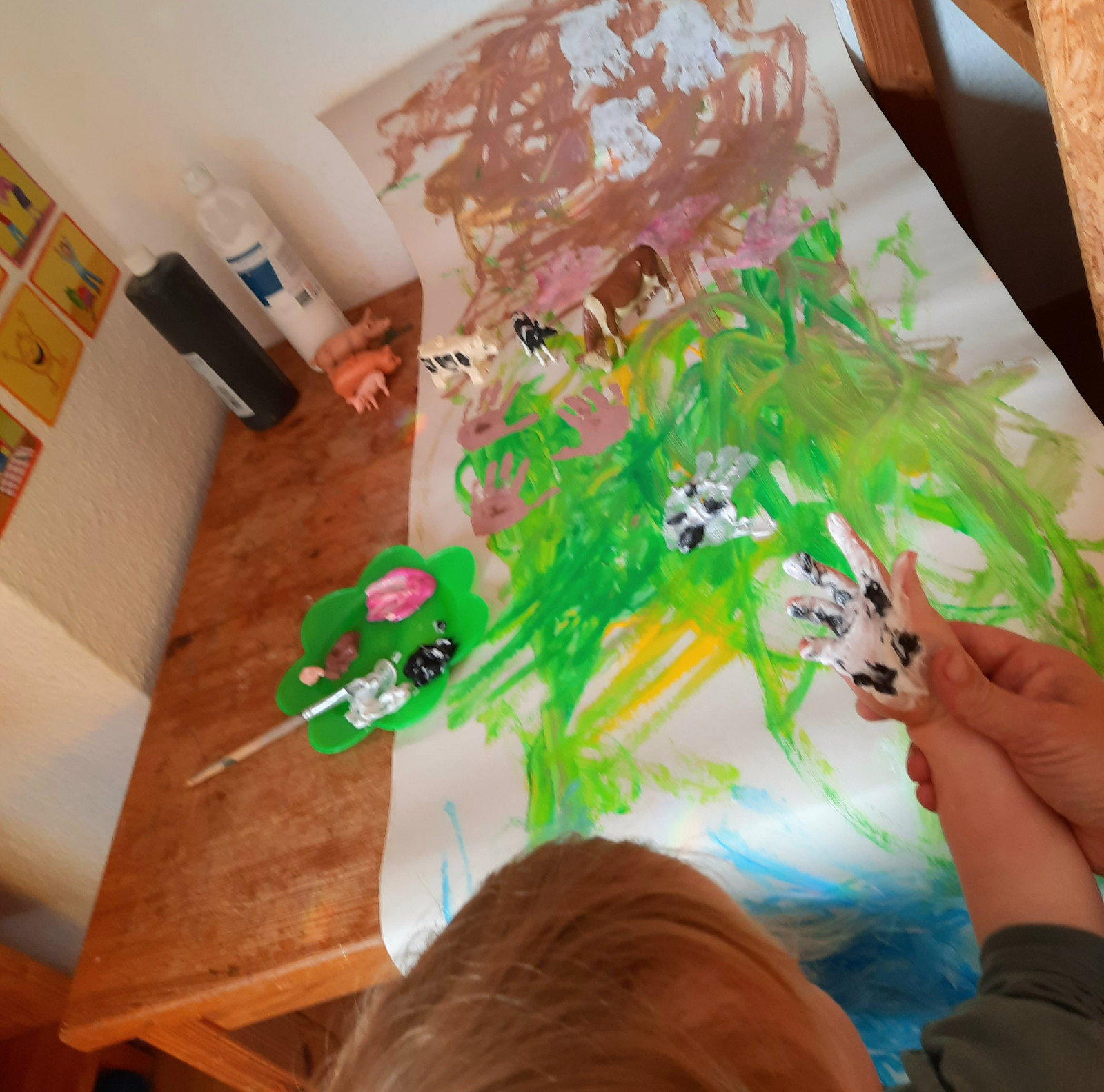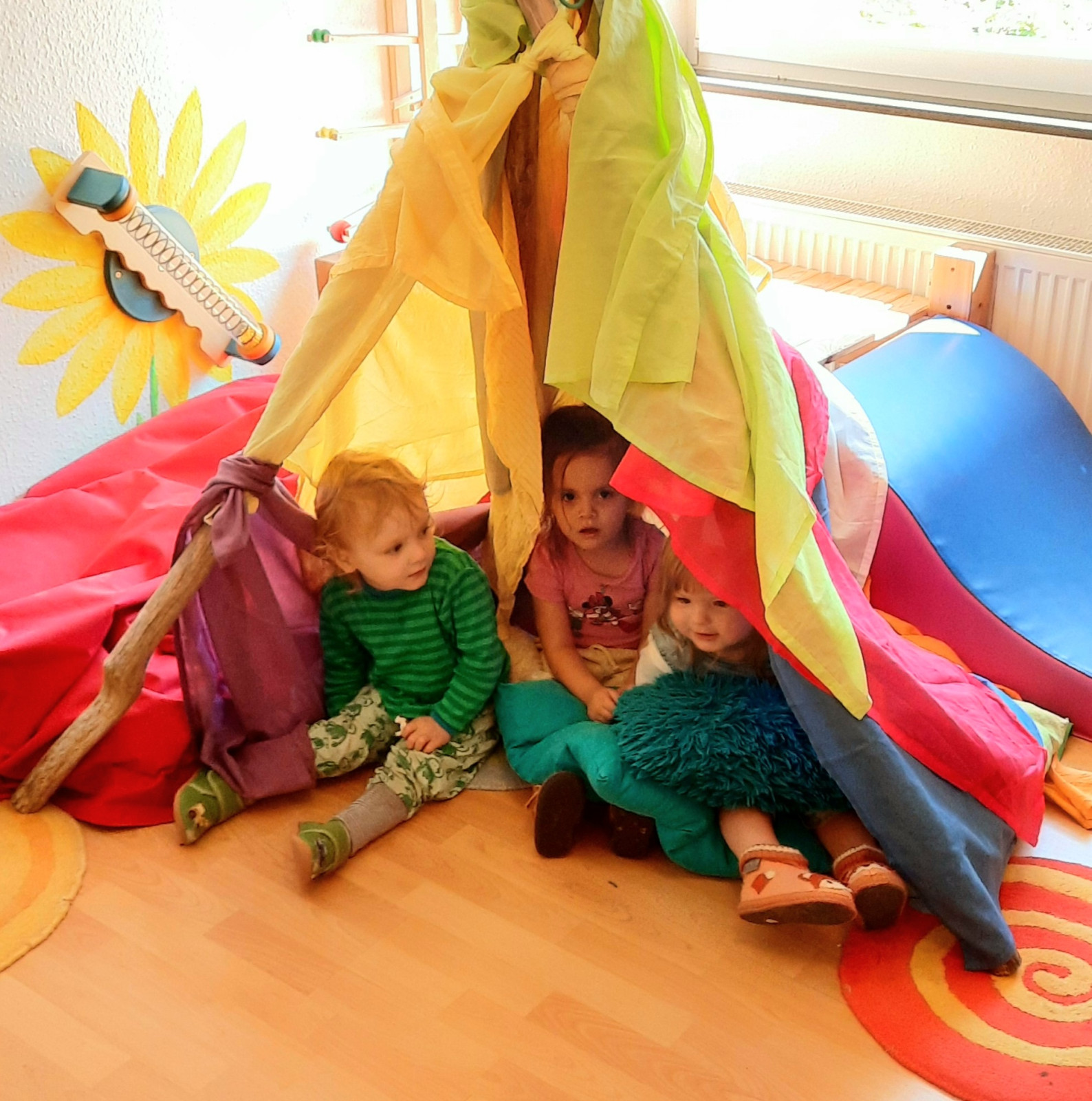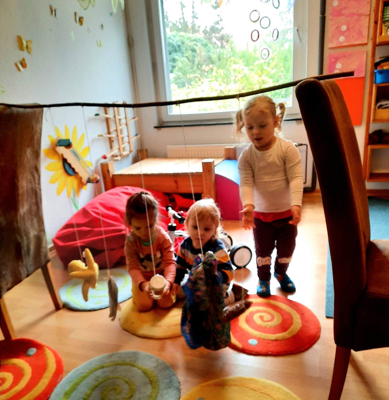 Wenn alle angekommen sind, gibt es viele Sachen, die wir machen. Wir musizieren gerne und viel, wir schnuppern jeden Tag ein bisschen Frischluft. Wir erforschen neugierig alles, was uns unter unsere Entdecker-Nase kommt. Wir bekommen Besuch oder gehen auf Tour, wir staunen und spielen, wir klecksen und kleistern, wir kullern und kichern, wir schmusen und schmatzen, wir teilen und toben und lesen und loben,...