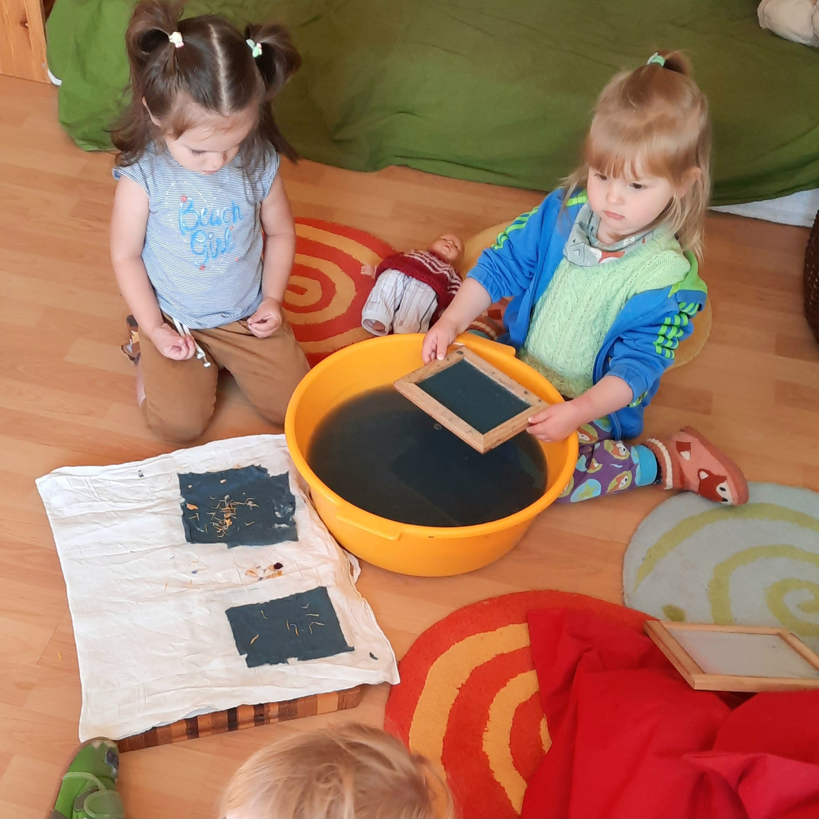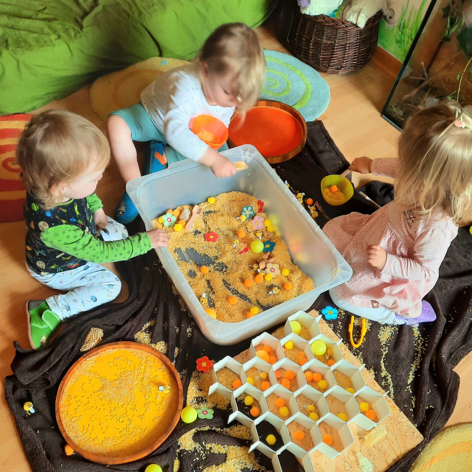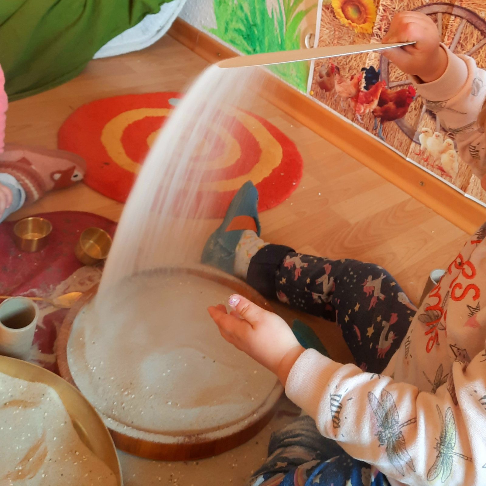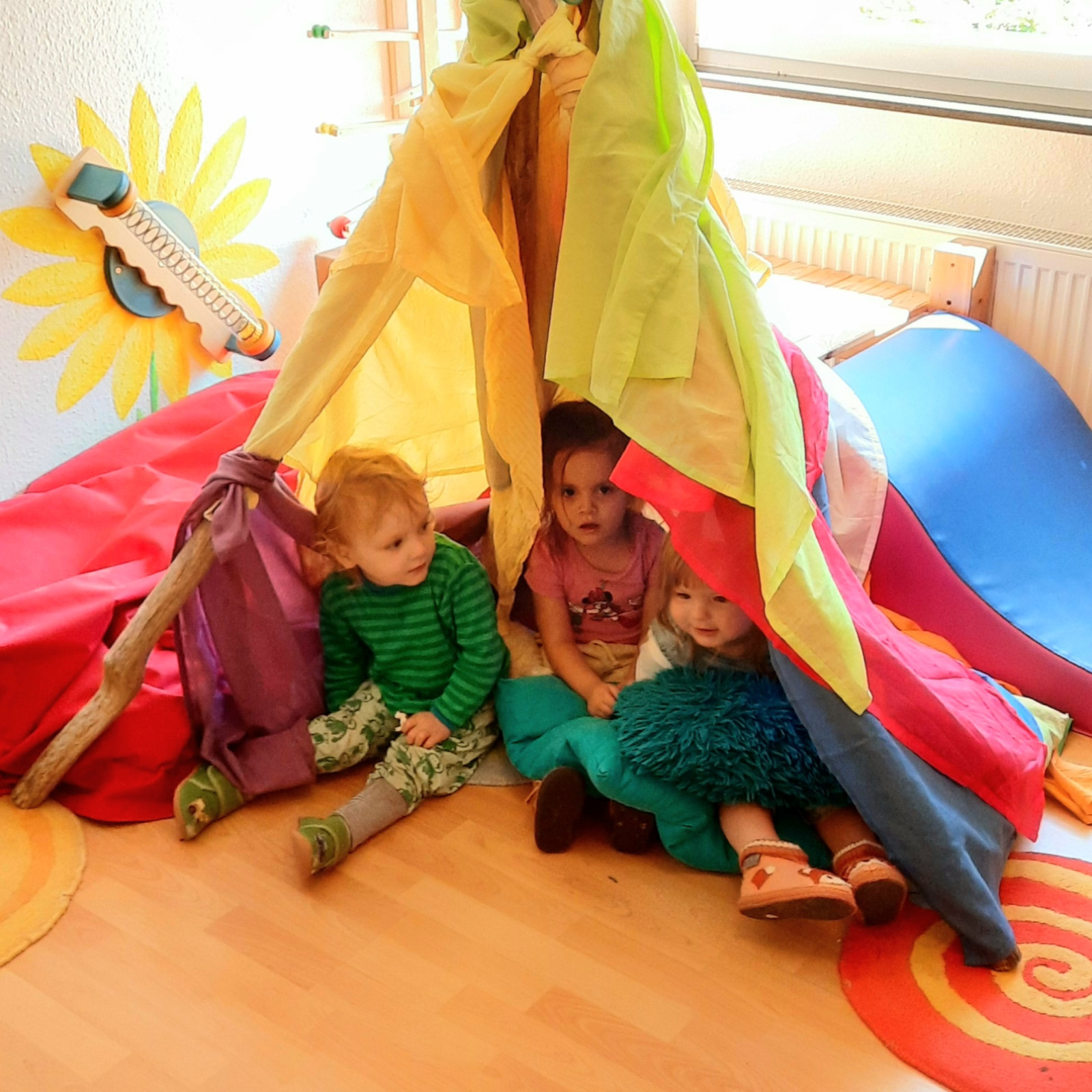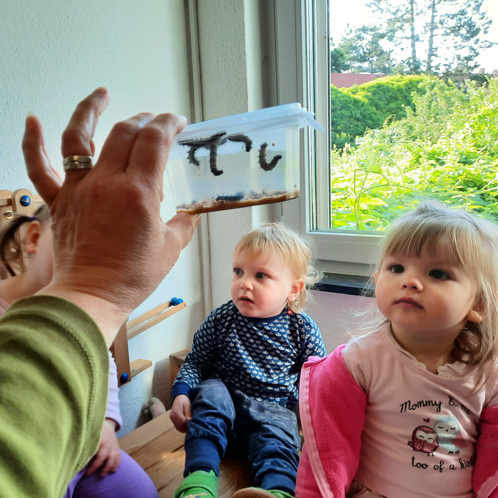 Wenn alle angekommen sind, gibt es viele Sachen, die wir machen. Wir musizieren gerne und viel, wir schnuppern jeden Tag ein bisschen Frischluft. Wir erforschen neugierig alles, was uns unter unsere Entdecker-Nase kommt. Wir bekommen Besuch oder gehen auf Tour, wir staunen und spielen, wir klecksen und kleistern, wir kullern und kichern, wir schmusen und schmatzen, wir teilen und toben und lesen und loben,...