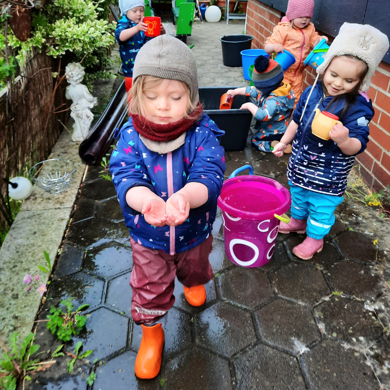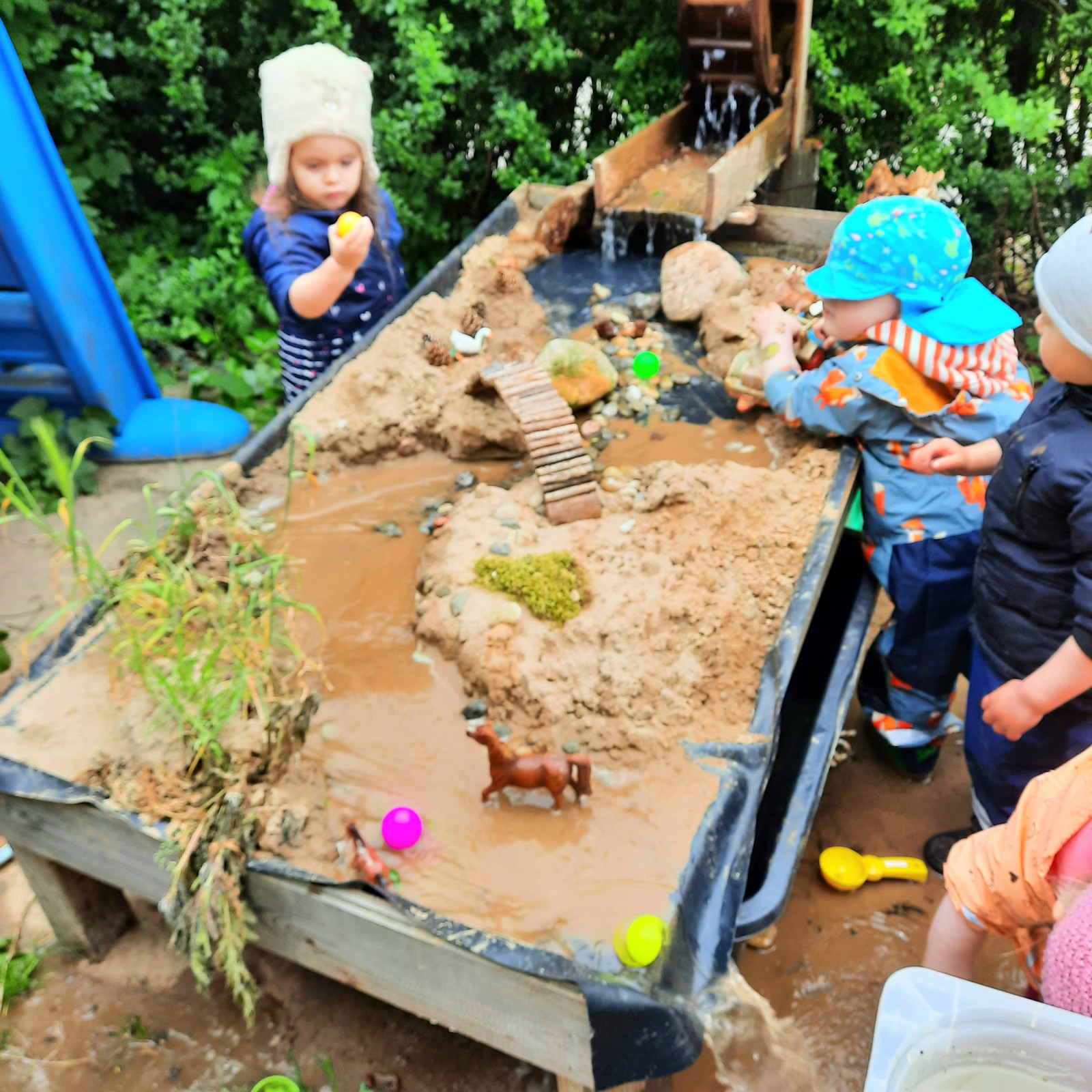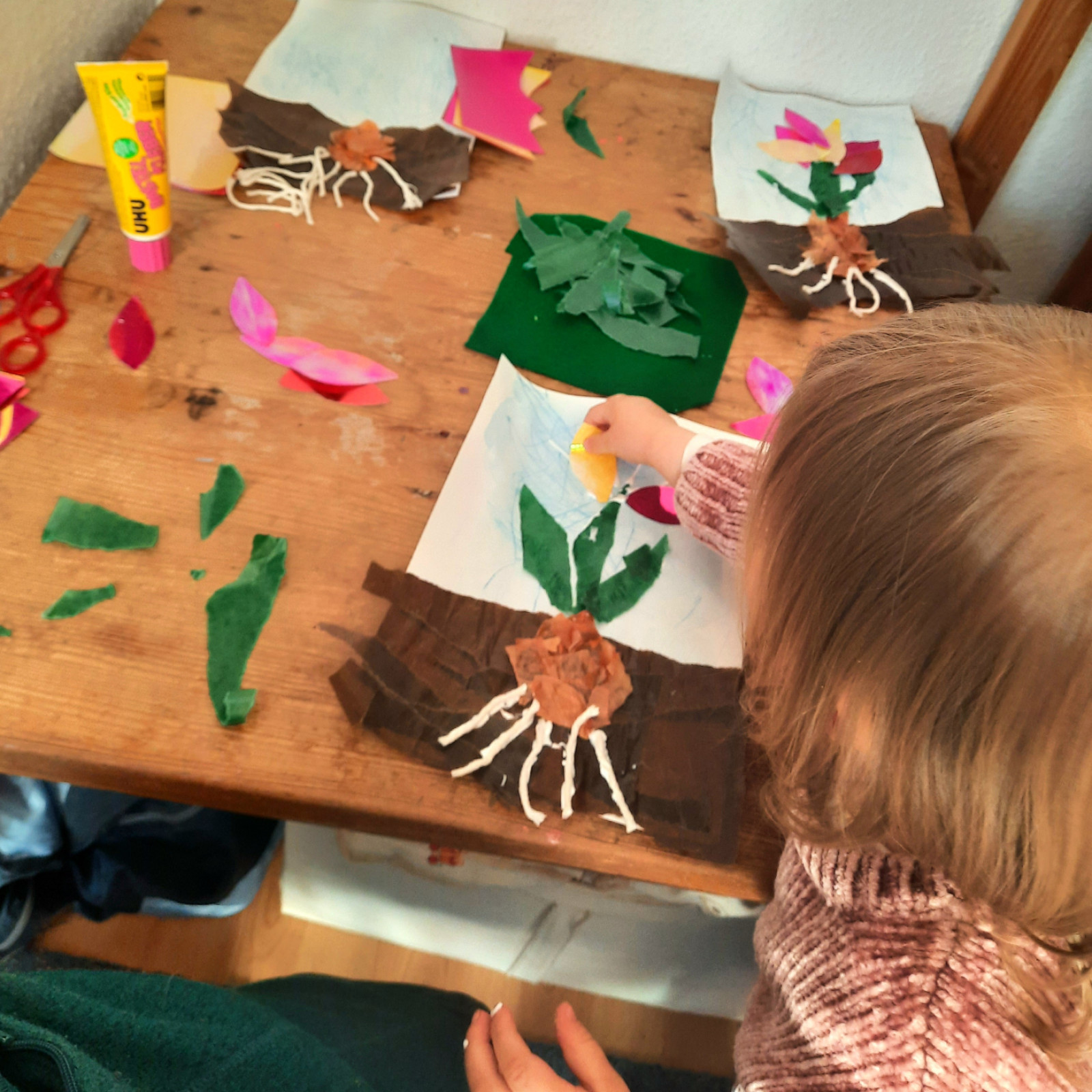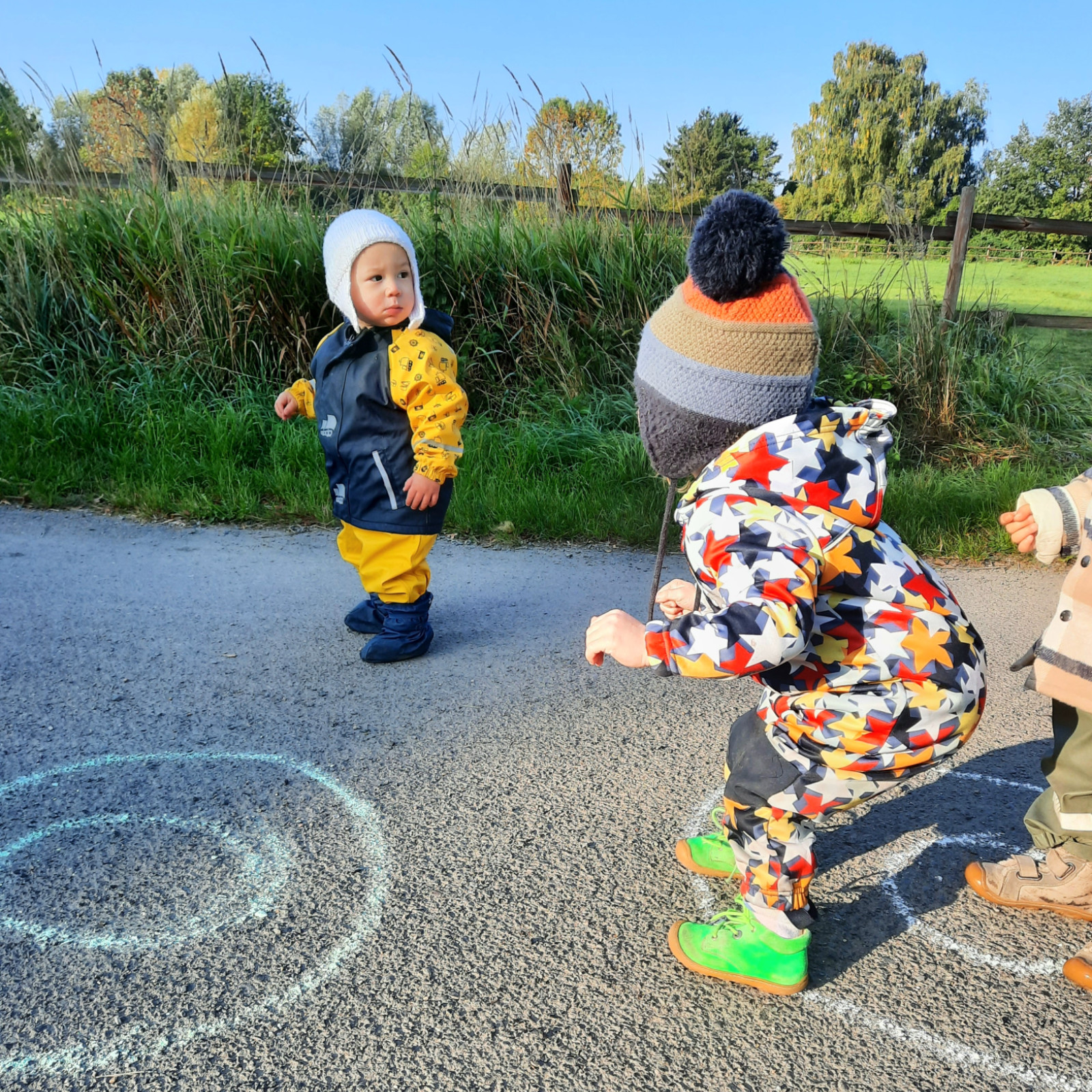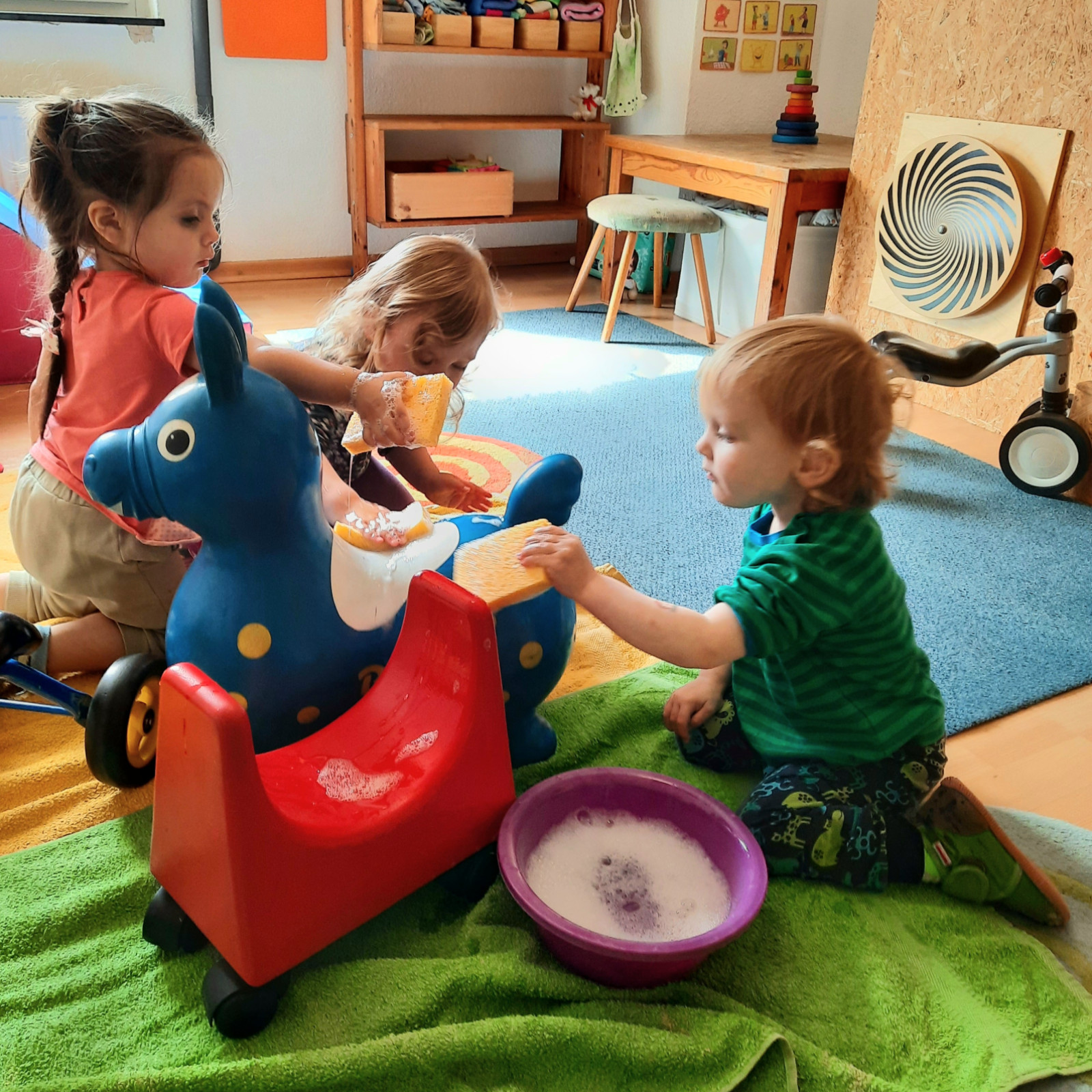 Wenn alle angekommen sind, gibt es viele Sachen, die wir machen. Wir musizieren gerne und viel, wir schnuppern jeden Tag ein bisschen Frischluft. Wir erforschen neugierig alles, was uns unter unsere Entdecker-Nase kommt. Wir bekommen Besuch oder gehen auf Tour, wir staunen und spielen, wir klecksen und kleistern, wir kullern und kichern, wir schmusen und schmatzen, wir teilen und toben und lesen und loben,...