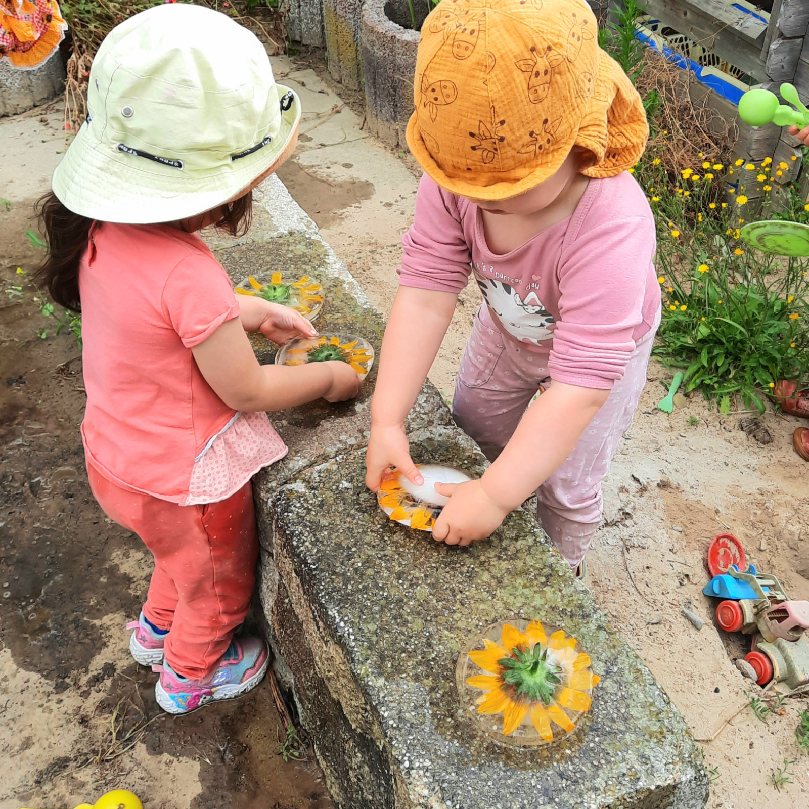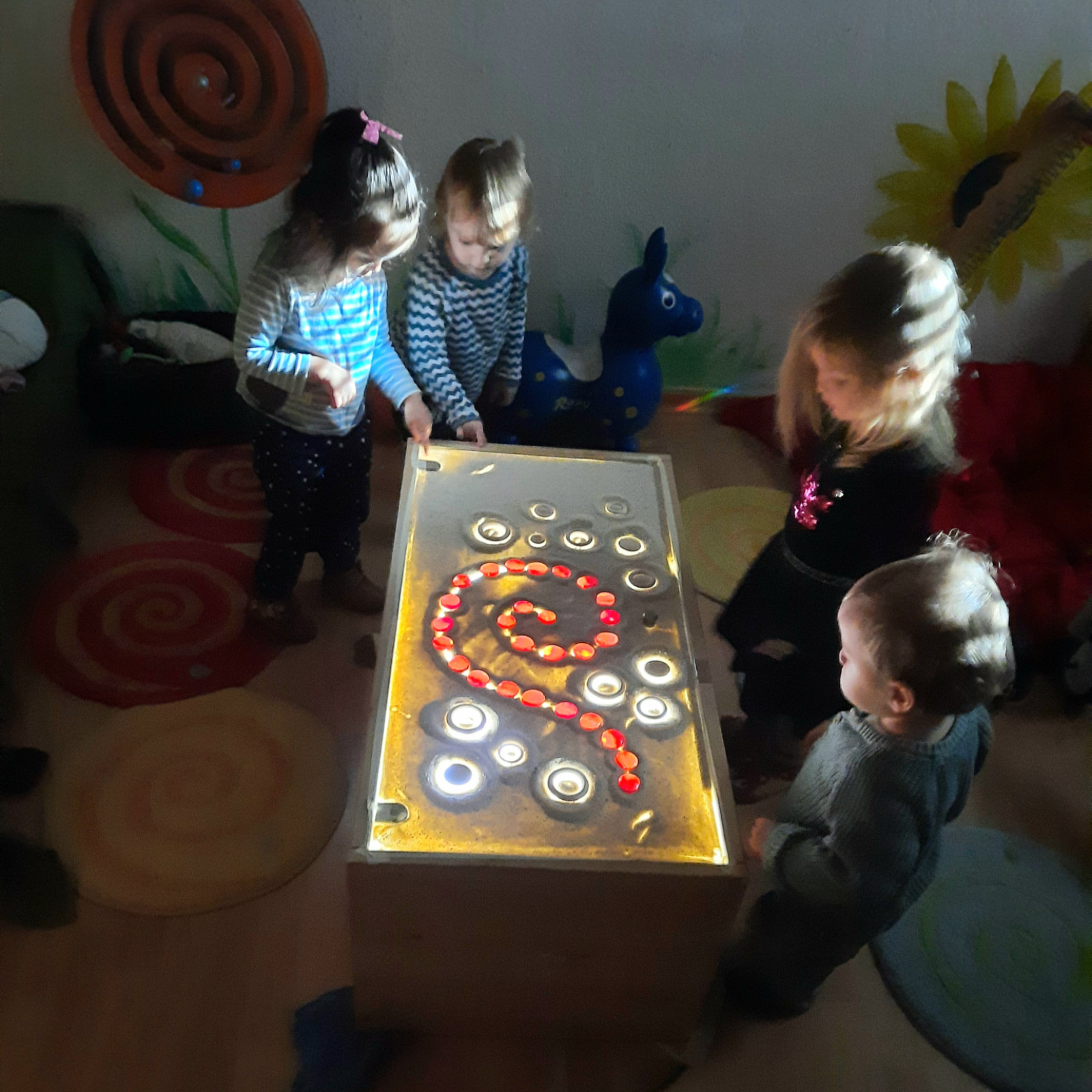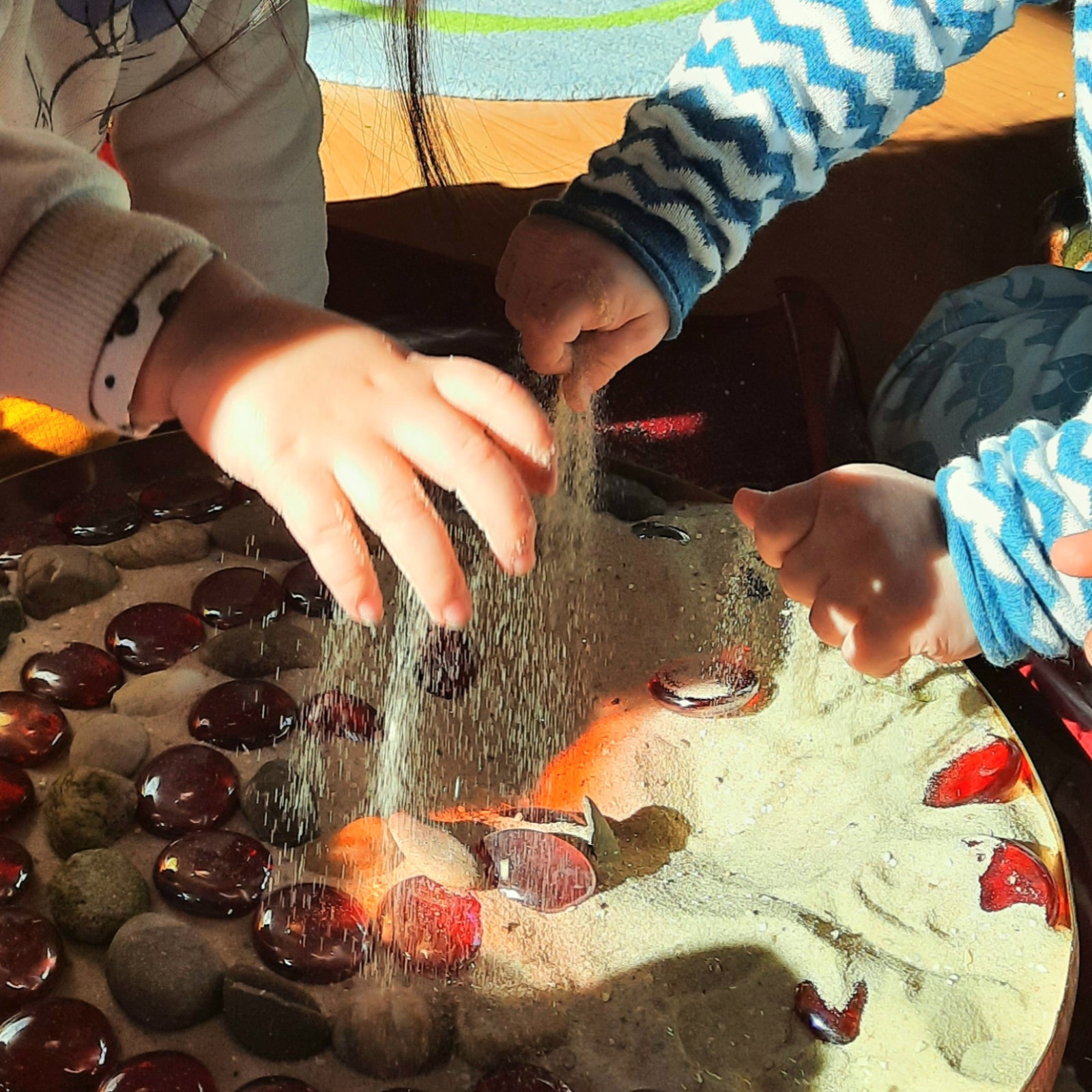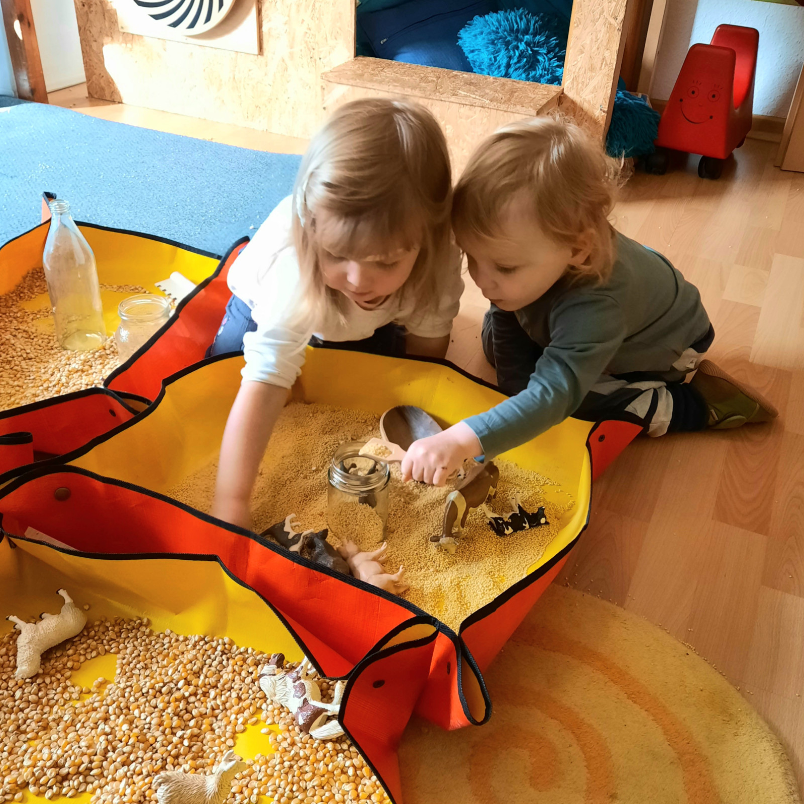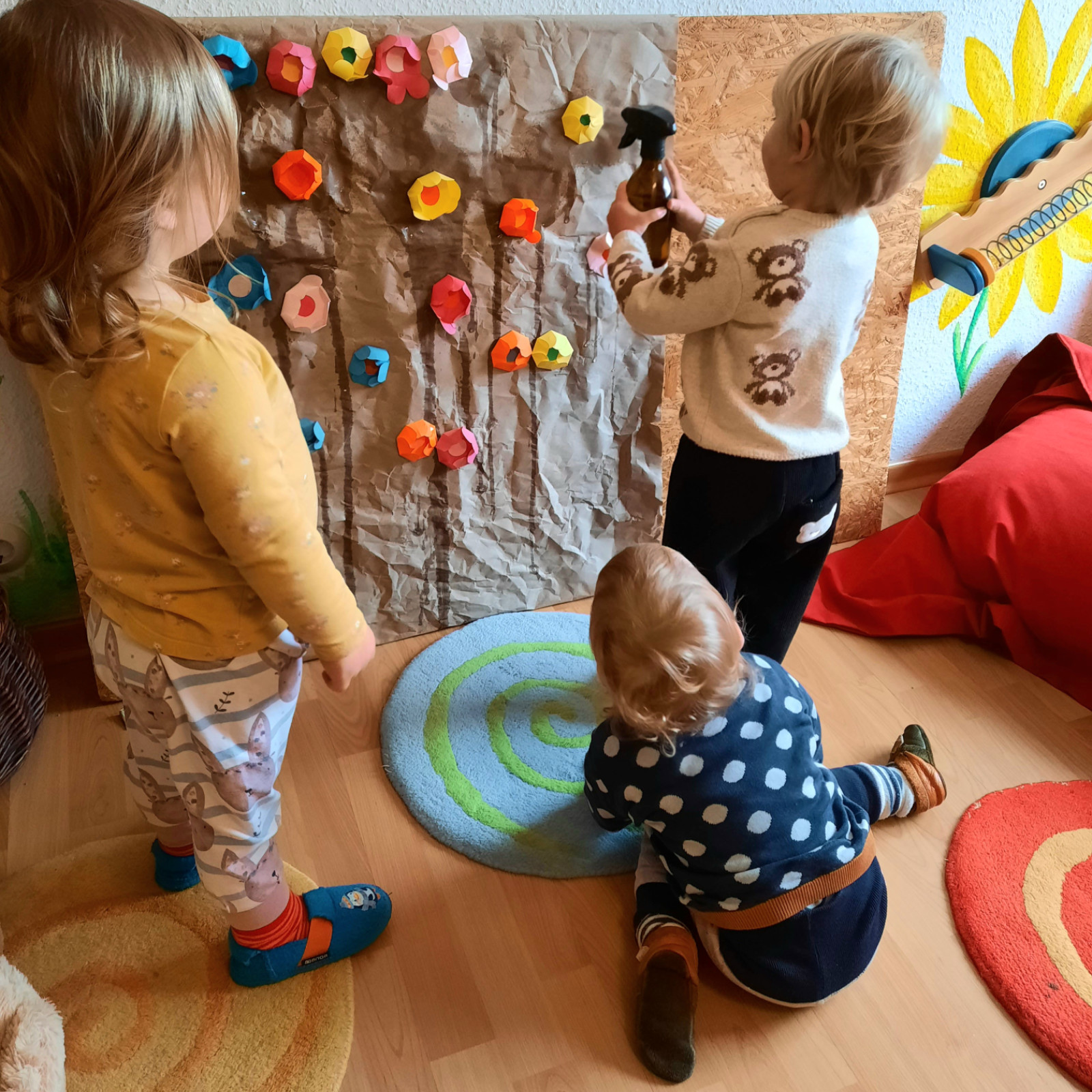 Wenn alle angekommen sind, gibt es viele Sachen, die wir machen. Wir musizieren gerne und viel, wir schnuppern jeden Tag ein bisschen Frischluft. Wir erforschen neugierig alles, was uns unter unsere Entdecker-Nase kommt. Wir bekommen Besuch oder gehen auf Tour, wir staunen und spielen, wir klecksen und kleistern, wir kullern und kichern, wir schmusen und schmatzen, wir teilen und toben und lesen und loben,...