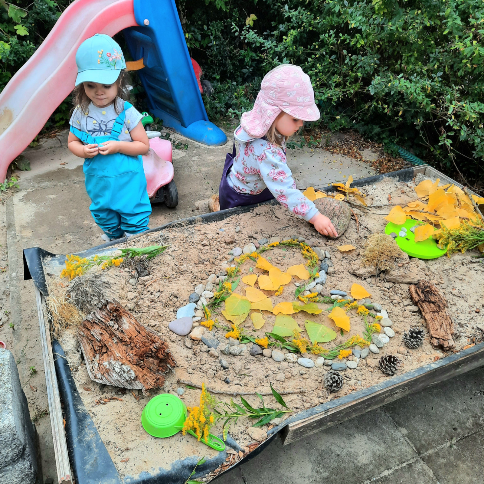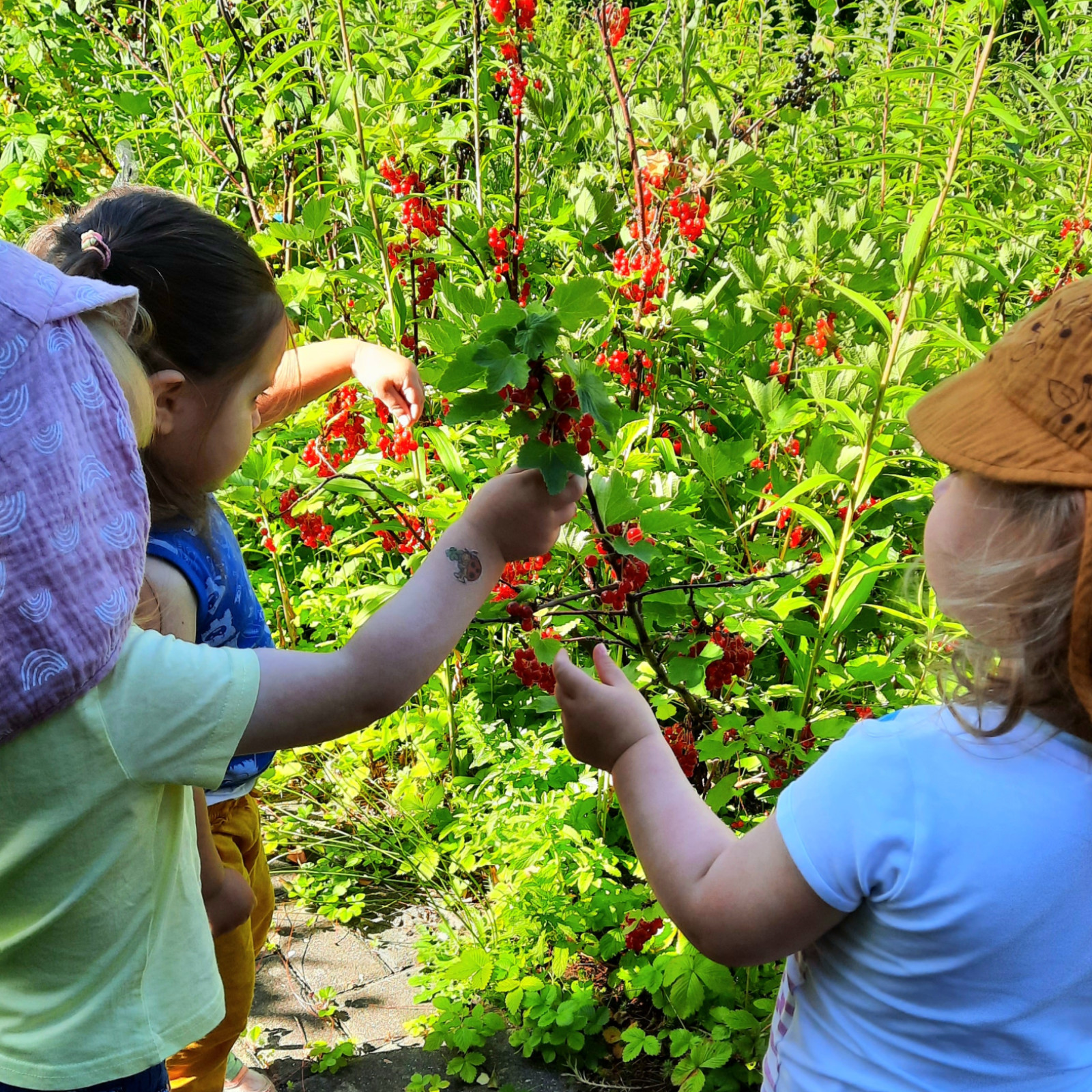 jeden Tag frische Luft in der Natur, wöchentlich Turnen, 1x pro Monat Reiten, Wildkräuter ernten und essen