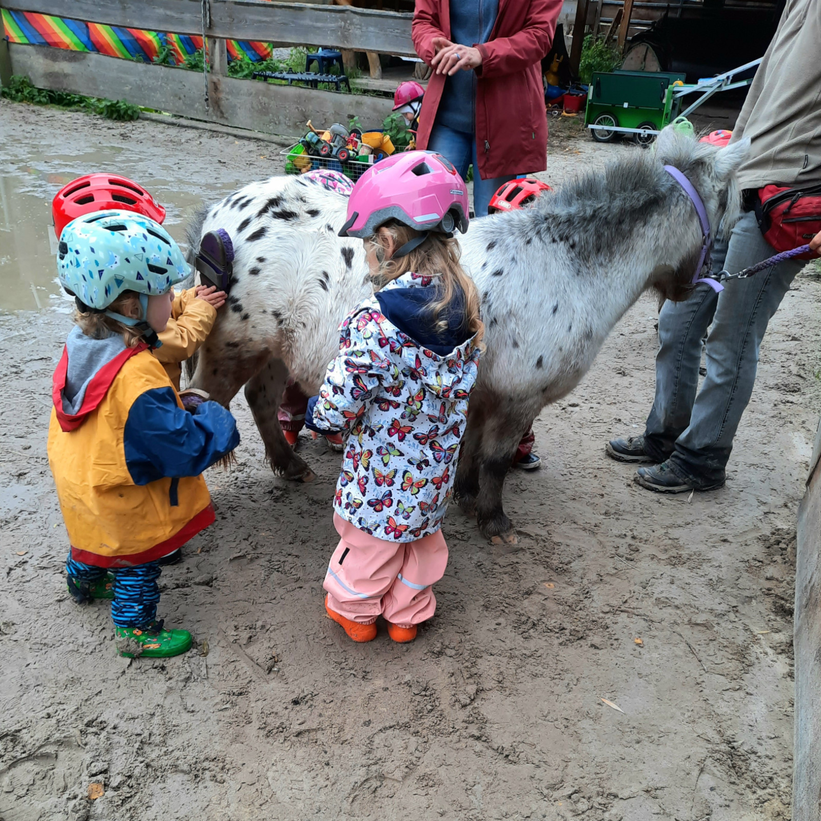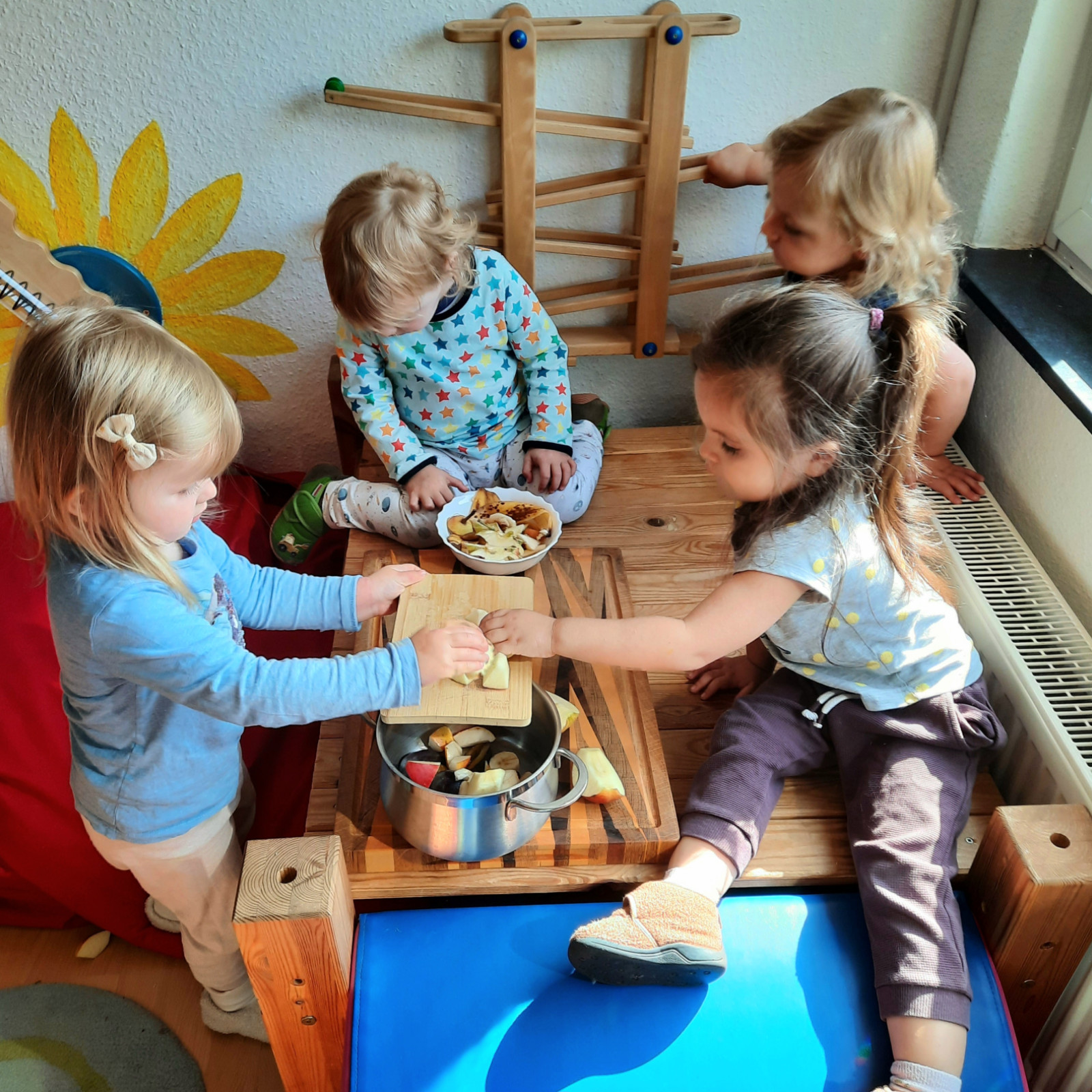 werden natürlich Äpfel geschält, die Popos geputzt, Schuhe und Jacken an- und